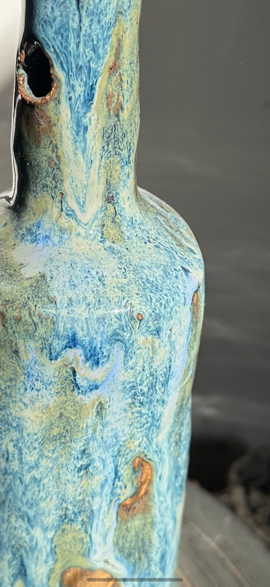 Raku Clay flower vase"Dance of the Water's Edge"